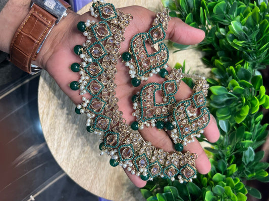 Beautiful Kohinoor Zircon Necklace Set with Earrings & Tikka