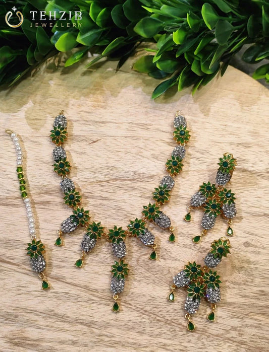 Antique Floral Naubahar Zircon Necklace Set
