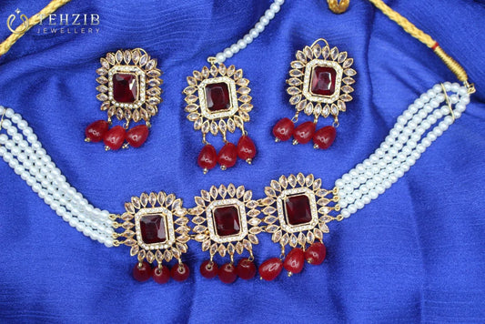Elegant Party Wear Zircon Choker Set With Tikka and Earrings