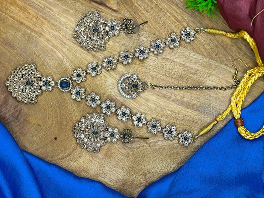 Beautiful Kohinoor Zircon Necklace Set with Earrings & Tikka